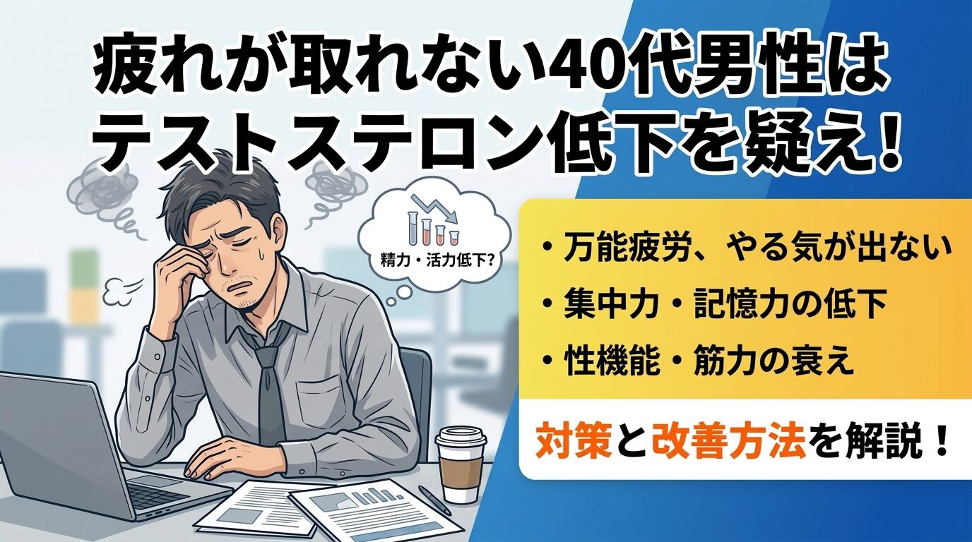 この記事では、40代男性の慢性疲労とテストステロン低下の関係・チェック方法・今日からできる対策を丁寧に解説します。