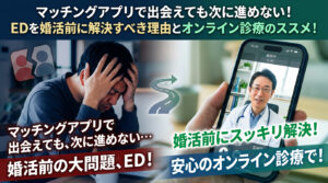 EDは多くの男性が抱えるデリケートな悩みです。初診料・診察料0円で気軽に相談できるオンライン診療を活用して、まずは医師に話してみることが解決への第一歩です。