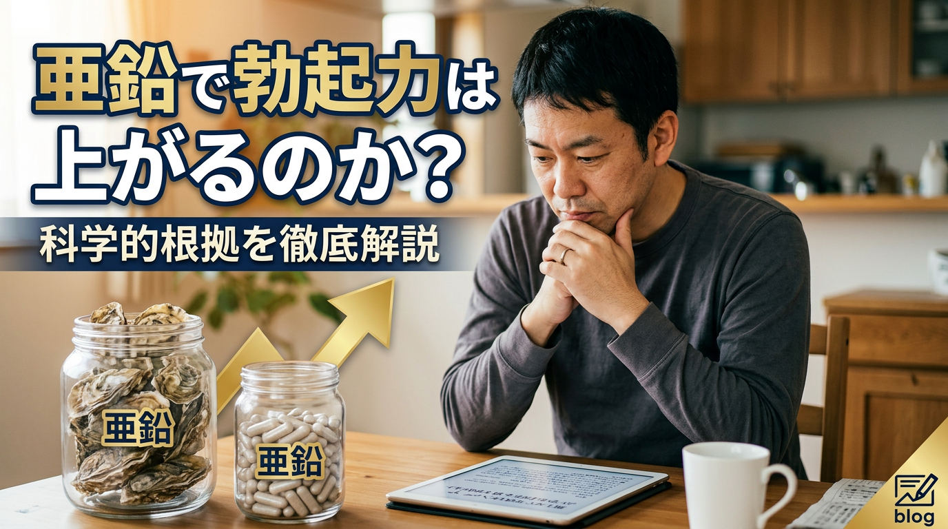 そんな疑問を持っている方は多いと思います。結論から言うと、亜鉛はテストステロン(男性ホルモン)の合成に不可欠なミネラルであり、不足すると勃起力の低下に直結します。
